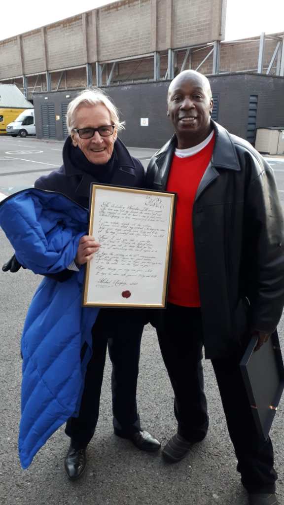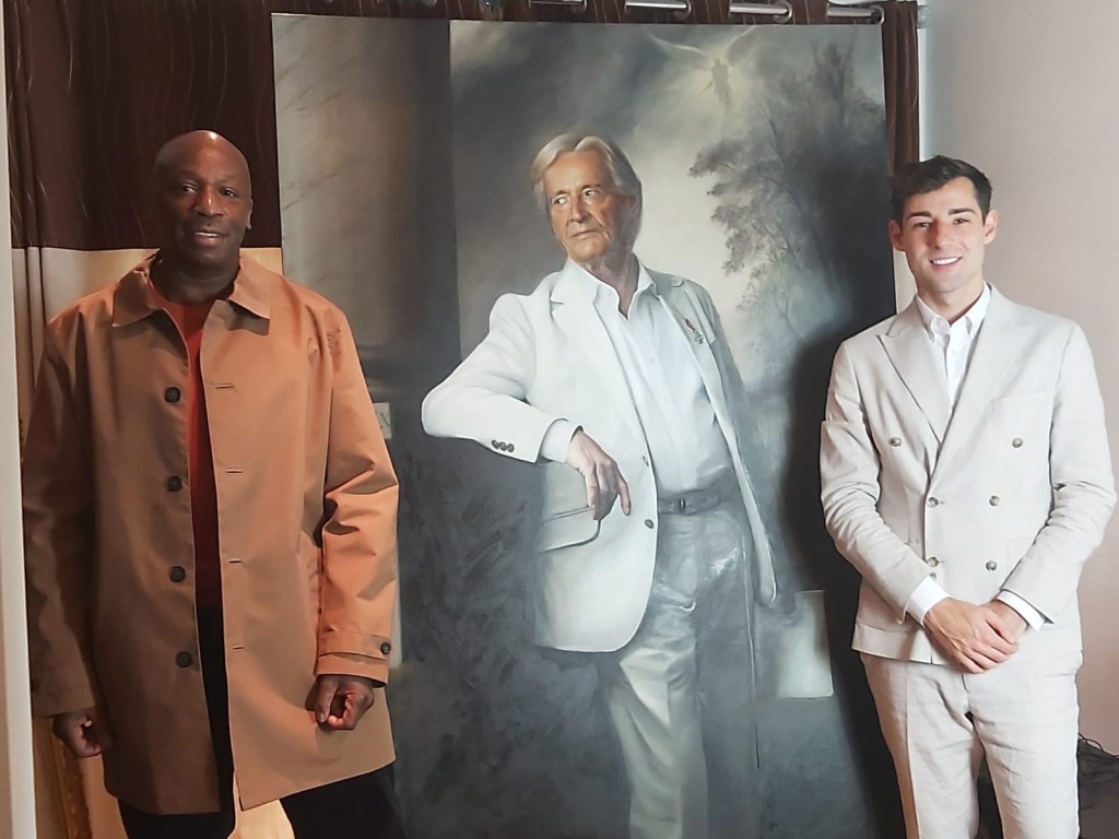 After attending a local celebrity networking event at Divine Hair & Beauty in Davenport. Carl approached his friend Michael Koropisz, fine artist and portrait painter with bags of talent. Carl had seen the fine quality and detail of Michaels work close up, and thought it would be a wonderful idea for William Roache to receive a portrait. After that chance meeting Carl asked Michael if he would he paint William’s portrait, and they discussed the time frame and the details.