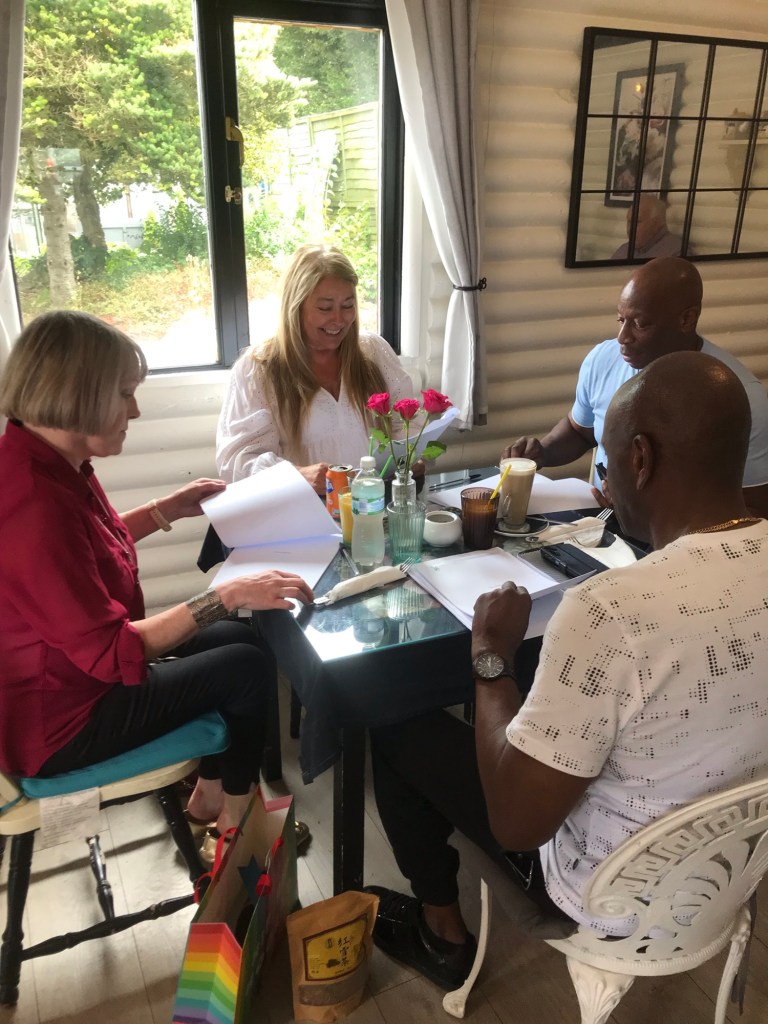 A meeting took place at Morleys tea rooms in Wilmslow. The attendees discussed two new projects. The writers were collaborating and putting the final touches on the book. Music producer Michael Crowe was there with writer Julie Modla and agent and PR Audrey Angus.